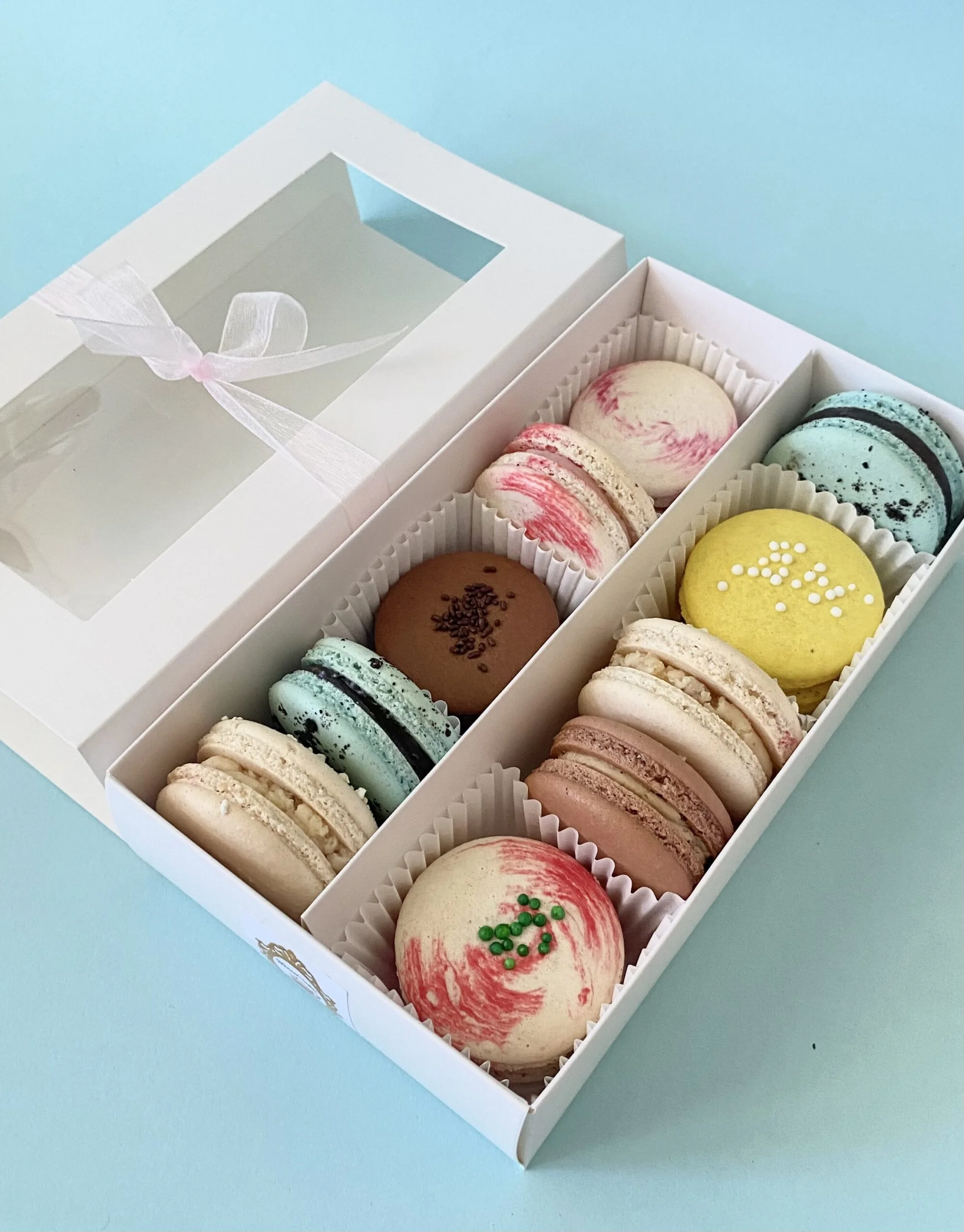 Box containing 10 macarons