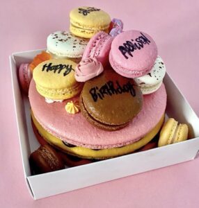 ב-Twinscakes, המקרונים שלנו עשויים בעבודת יד וניתנים להתאמה אישית ללא סוף: לוגו מודפס על נייר כסף, צורות בהתאמה אישית, מסרים ייחודיים…