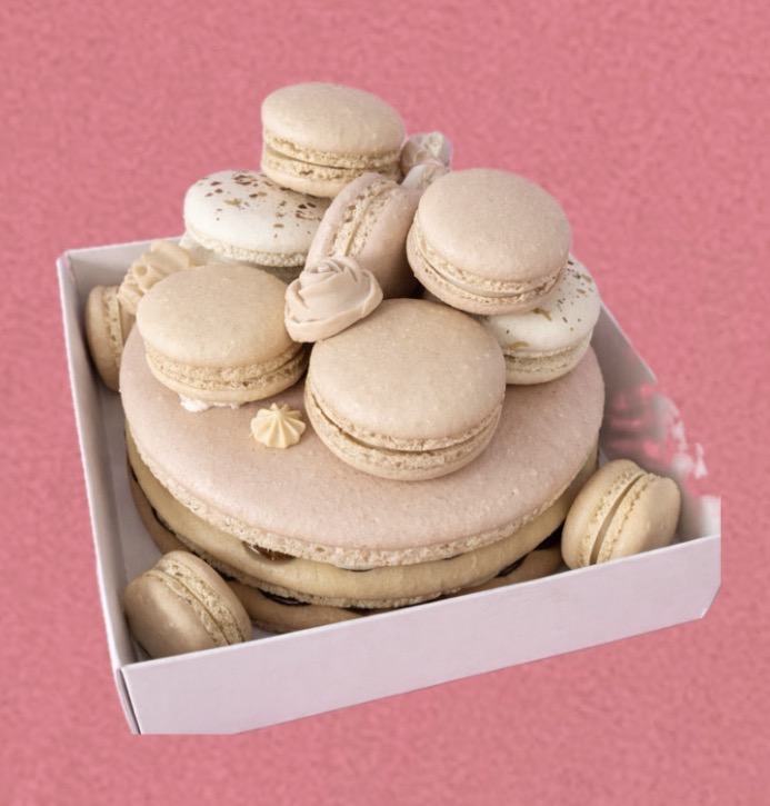 העוגה הזו מורכבת מכ-10 מקרונים הממוקמים על העוגה וסביבה, בגדלים שונים (רגילים, בינוניים או מיני), וכמה סוכריות.