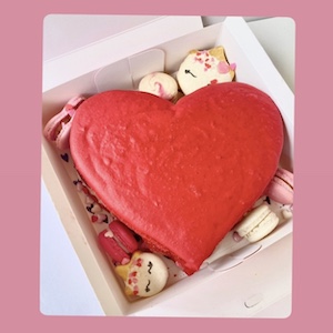 2 קומות, קוטר של כ-10 ס"מ, והיא מורכבת מ-4 מקרונים מיני + מקרון לב + מקרון חד קרן + בייבי חד קרן יחד עם סוכריות וקונפטי סוכר.